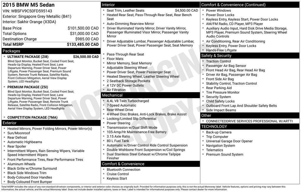 2015 BMW M5 Base Sedan V-8 cyl