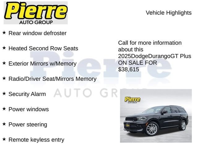 Discover the exceptional 2025 Dodge Durango GT Plus, a versatile and well-equipped SUV that combines power, style, and advanced technology. This stunning Black beauty boasts a commanding presence on the road, ready to elevate your driving experience.
