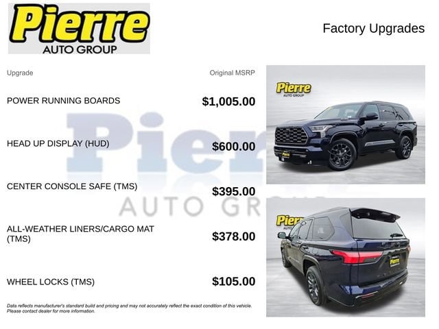 Boasting a sophisticated V6 Hybrid powertrain, the Sequoia Platinum delivers a remarkable blend of performance and efficiency, with an impressive 19 city and 22 highway MPG. Elevate your driving experience with an array of premium features, including: